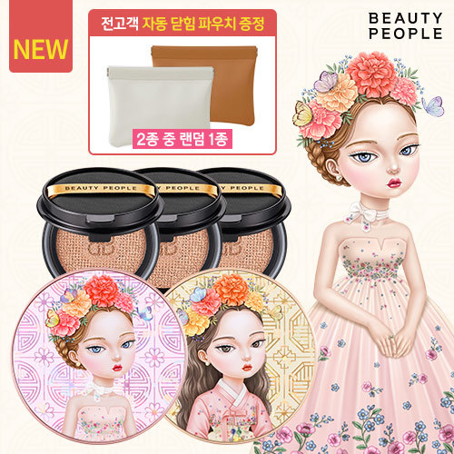 [5%할인+5%적립[뷰티피플 철벽녀] 소이 단백질 앰플쿠션 2개+리필3개+자동닫힘파우치