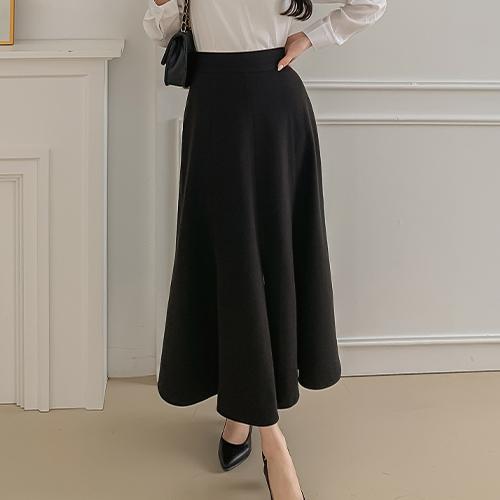 [릴룸][고급/우아]모카 롱스커트 플레어 A라인 데일리