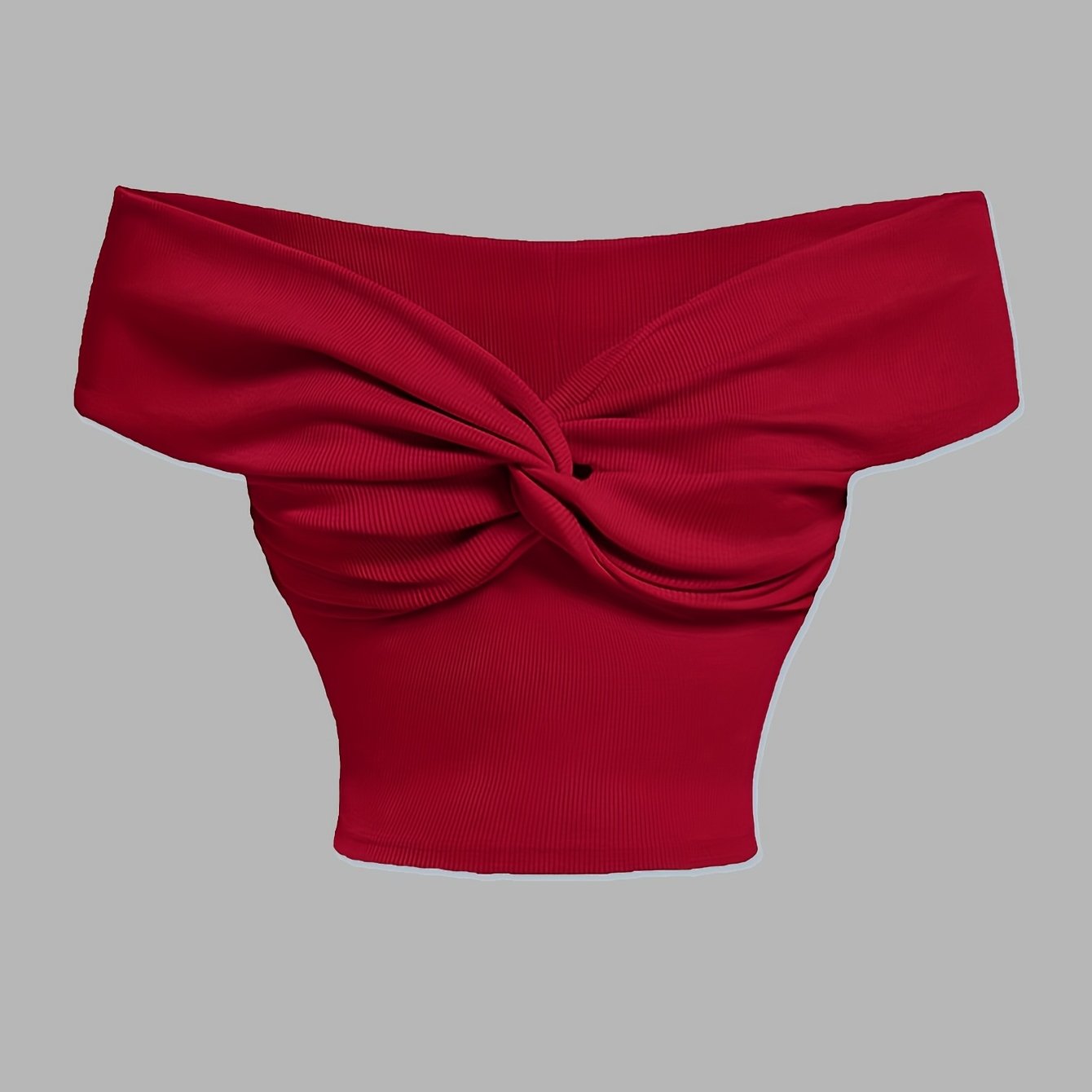 TEMU 여성 솔리드 컬러 오프숄더 매듭 디자인 반팔 탑