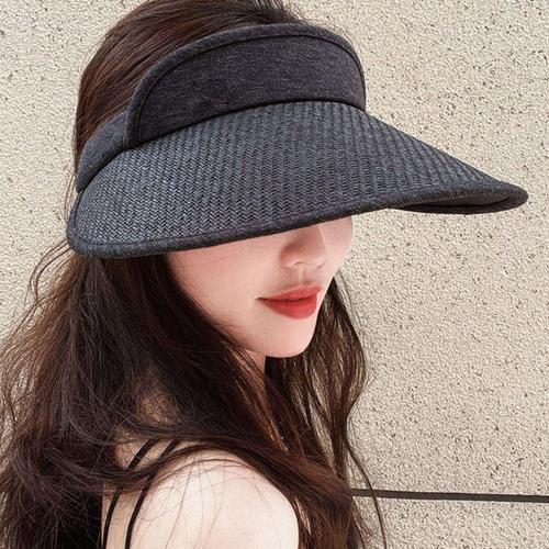 여성용 선캡 햇빛차단 라탄 모자 캡 블랙