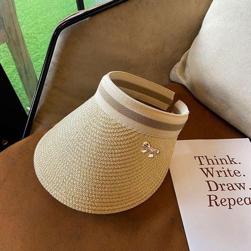 [다잇템]여성 아웃 컬러라인 라탄 선캡 모자 썬캡 여름 (10744785A)