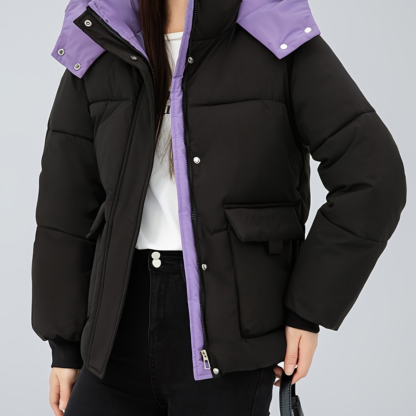 TEMU 패션 캐주얼 컬러블록 패딩 코트