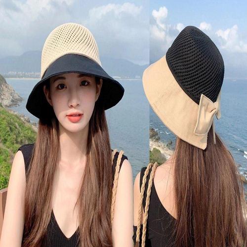 [에이치플러스몰]여름 바닷가 라탄 메쉬 라피아햇 버킷햇 리본 썬캡