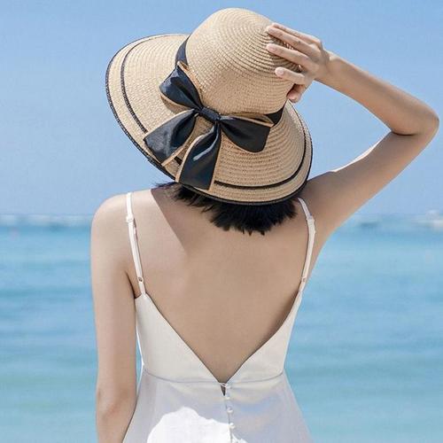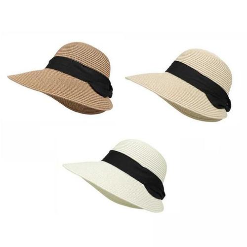 여성 베이직 리본 라피아햇 와이드챙 여름 밀짚모자