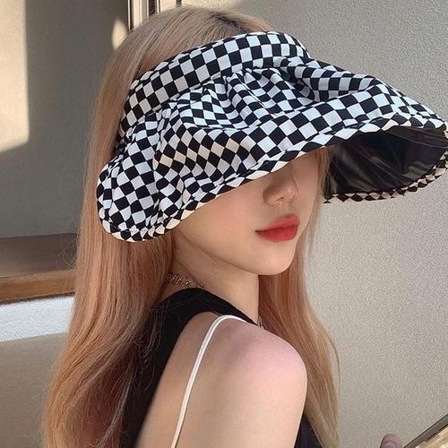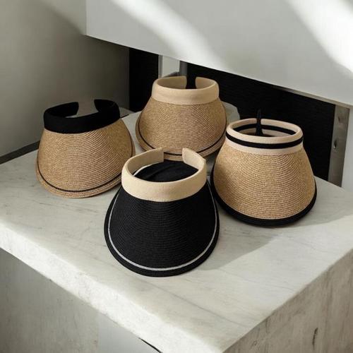 [에이치플러스몰]여성 차단돌돌이 배색 휴대용 블랙 라피아햇 파나마햇