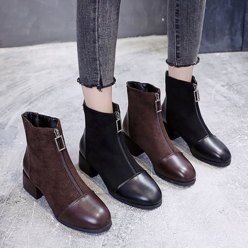 TEMU 여성용 시크하고 간편한 앵클 부츠, 소셜라이트 스타일, 청크 힐과 사각 토가 특징, 가을 및 겨울에 완벽, 소셜 장면에서 정교한 취향을 보여줍니다.