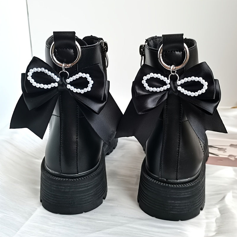 TEMU 2개입 우아한 블랙 인조 진주 리본 신발 클립 - 탈착식, 부츠 & 신발용 장식 참, 크리스마스, 할로윈, 추수감사절 등에 적합, 신발 액세서리, 배터리 없음