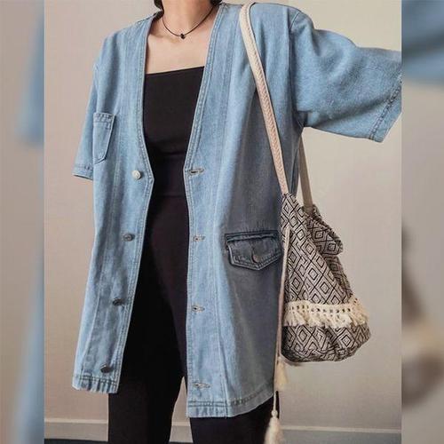 TEMU 여성 봄가을겨울 데일리 루즈핏 빅포켓 심플 날씬해 보이는 데님 재킷 코트 캐주얼 패션 부드럽고 편안한 긴팔 카고 청자켓