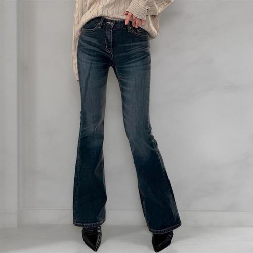 여성 세미 부츠컷 연청 데님 팬츠 여름 나팔 청바지 hFN9+7dKk