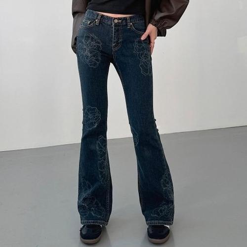 [다잇템]여성 슬림핏 Y2K 플라워패턴 나팔 청바지