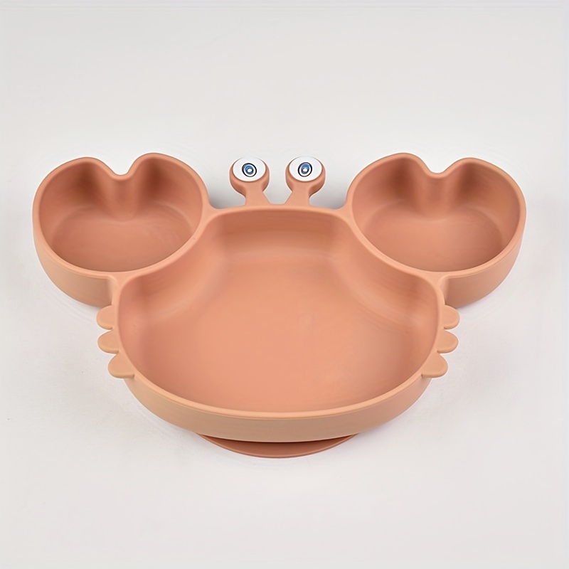 TEMU 귀여운 게 모양 실리콘 어린이용 접시 - 흡착컵 포함, 전자레인지 및 식기세척기 사용 가능, 포크, 스푼, 과자를 위한 3개의 구획이 있는 완벽한 자가 먹는 어린이를 위한 필수품, 어린이 식사 시간 필수품 | 구획화된 접시 | 손잡이가 쉬운 주방 도구, 어린이 음식 액세서리