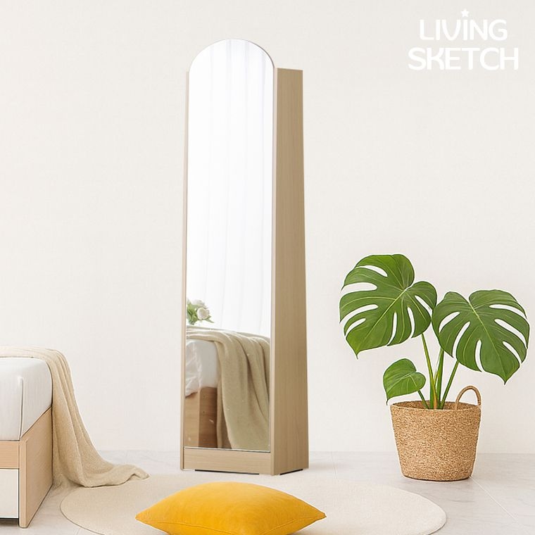 랑데뷰 400 전신거울 수납장 E0등급 아치형 틈새 높은 미러장 원룸 전신경 2colors