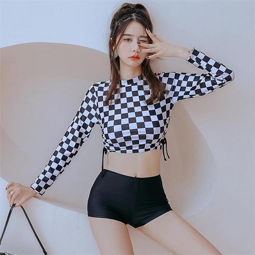 [다잇템]여자 래시가드 세트 비키니 격자 체스 수영복 (8422667A)