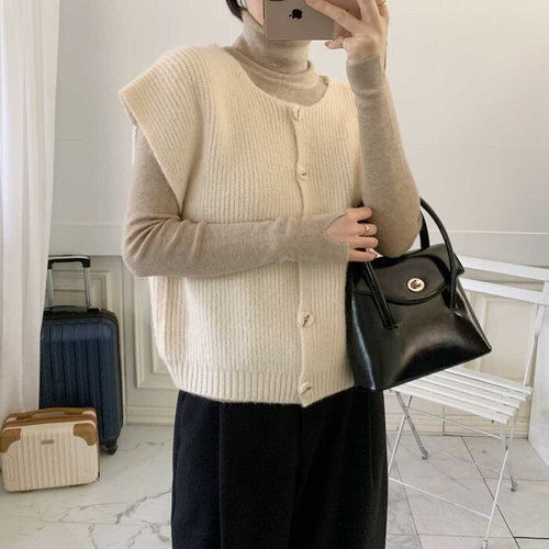갤러리샵 / 램스울 터틀넥니트 조끼 투피스 세트