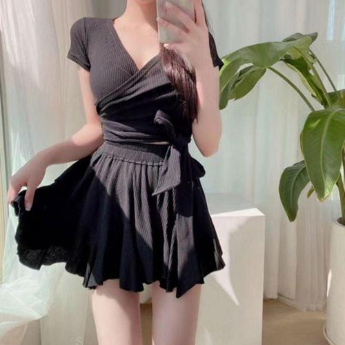 여자 랩 투피스 스커트 수영복 반팔 상하세트 WFIE7KP