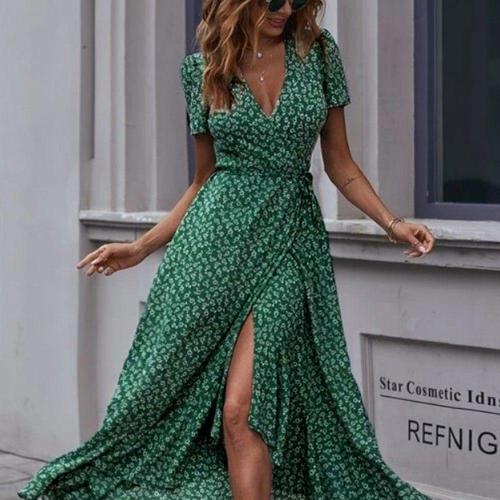 [에이스토리] 여름 브이넥 나염 랩 롱원피스 봄가을 슬림핏 날씬 랩원피스