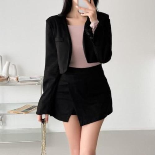 [다잇템]여성용 랩 탱크 미니스커트 자켓과 세무 세트