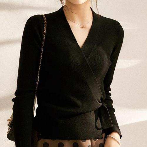 SunburstWonder 여성 가을 겨울 니트 언발란스 랩 긴팔