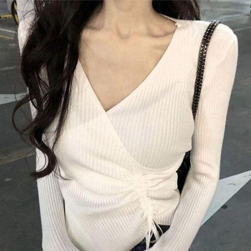 [셀러허브_여성트랜드패션]ONM 여성 랩 브이넥 니트 스트링 패션 티셔츠