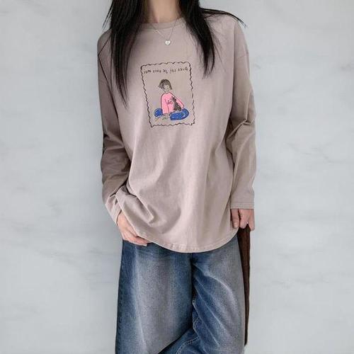 [옷자락]여성 러블리 프린트 루즈핏 레이온 여유로운 긴팔 티셔츠