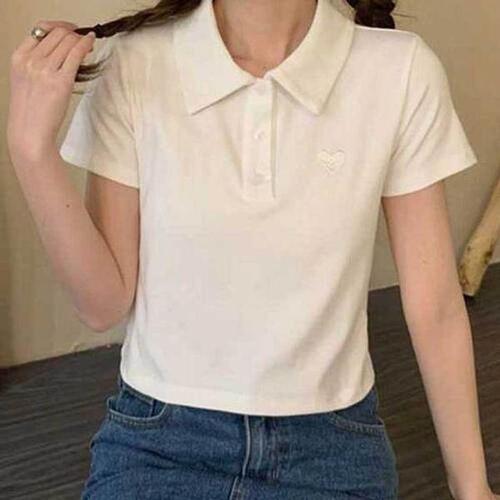 [에이치플러스몰]봄 여름 데일리 캐주얼 러블리 여성 크롭 카라 티셔츠