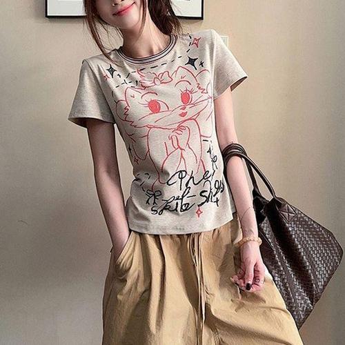 [에이치플러스몰]G126940_러블리 고양이나염 스판 티셔츠