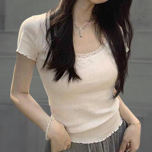 [미라클세븐]여성용 러블리 레이스 스퀘어넥 반팔 티셔츠