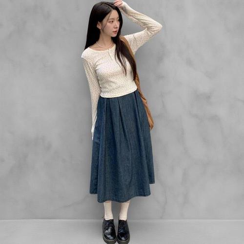 [옷자락] 여성 러블리 프린트 루즈핏 레이온 여유로운 긴팔 티셔츠