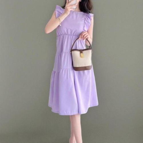 [미라클세븐]여성용 코튼 퍼프 소매 러플 미니 드레스