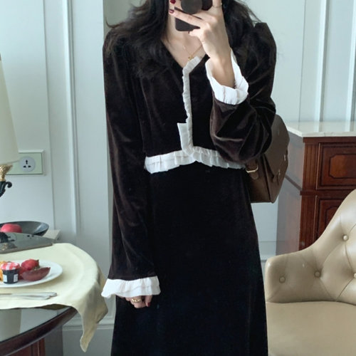 허그허그 / 레이디 러플 벨벳 원피스