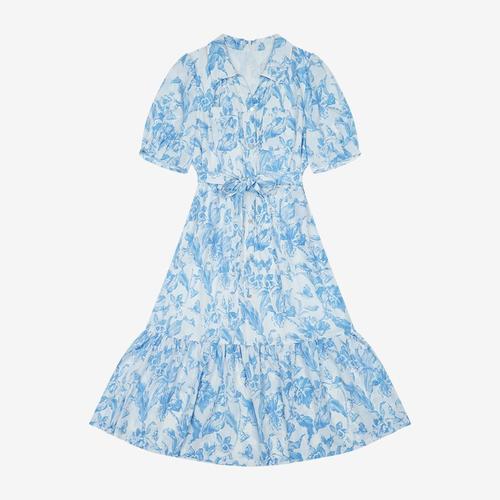 G126742 러플카라 쉬폰원피스 허리밴딩 빅플라워 (KYR-WFH3WMS)