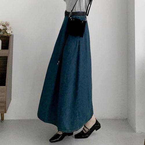 [신상오픈런]여성 핀턱 롱 청스커트 뒷밴드 꽈배기 벨트