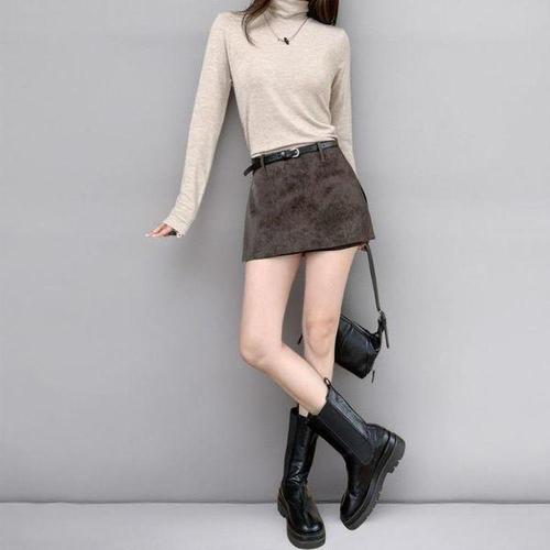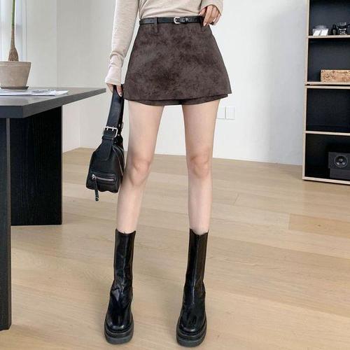 [신상오픈런]여성 빈티지 스웨이드 벨트 반바지 치마