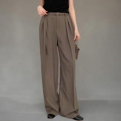 [신상오픈런]여성 더블핀턱 벨트 하이웨스트 와이드 팬츠