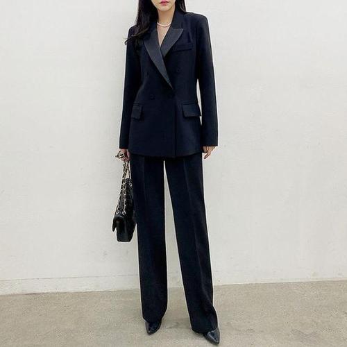 [신상오픈런]누비오 여성 검정 더블 정장룩 재킷 투버튼 베이직