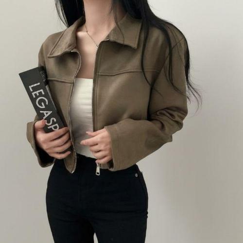 [신상오픈런]여성 캐주얼 크롭 집업 자켓 스웨이드 점퍼 데일리룩