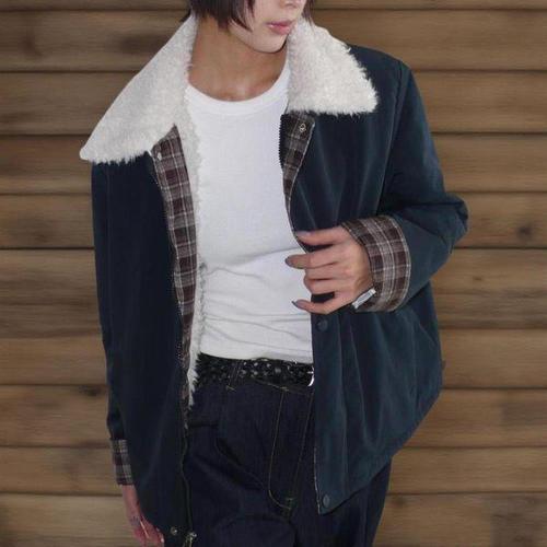 [신상오픈런]여자 겨울 뽀글이 카라넥 배색 체크 워크 털안감 자켓