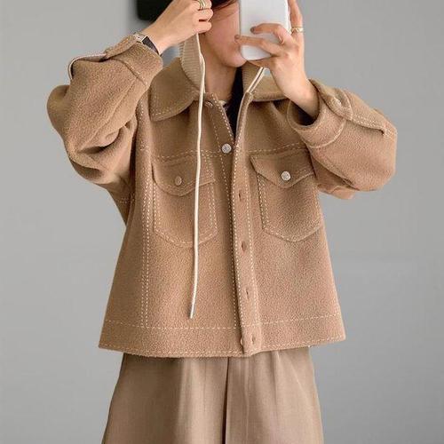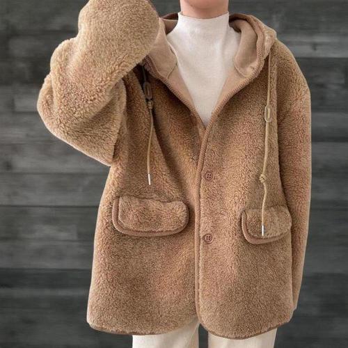 [신상오픈런]여성용 겨울 후드 오버핏 버튼 포켓 점퍼 하프 자켓