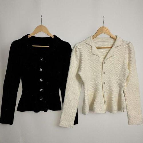 [신상오픈런]여자 플라워 큐빅단추 브이넥 하객룩 울 페플럼 자켓