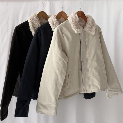 [신상오픈런]여성 겨울 털안감 체크 카라넥 뽀글이 자켓