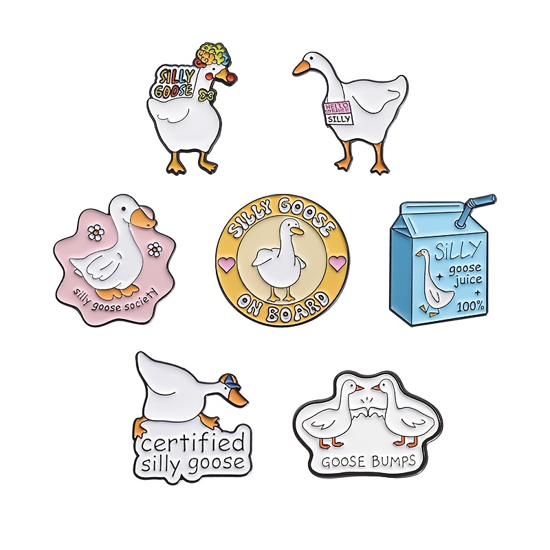 TEMU 7pcs WhimsyWear 만화오리 에나멜핀 세트, 귀여운 합금 버찌, 혼합된 색상으로 재미있는 오리 버찌, 남녀 공용 패션 액세서리, 옷과 배낭에 적합, 친구에게 이상적인 선물