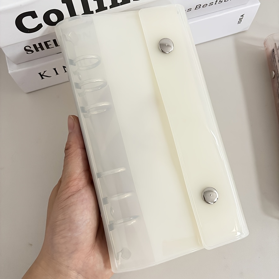TEMU DIY 수집 노트북, 저널 및 사무용품, 학교 용품을 위한 A6 좁은 바인더 리필 커버 - 밀크 화이트, 블링 핑크, 스타 글리터 | 메탈 링이 있는 투명 플라스틱 루즈 리프 보호자, 디자인, 내구성 있는 보호, 스타일리시한 커버, 매끄러운 마감, 노트북 리필 커버, 문구 애호가를 위한 노트북 커버