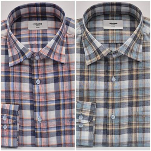[레노마셔츠]일반핏/얇은/린넨 혼방 멀티 빅체크 긴소매 셔츠 RQSSG1437 OR, GE_US