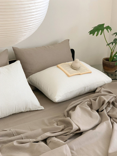 [에이프랑] 밀키 라인 코튼 홑이불 겸 스프레드_소라&훌그레인