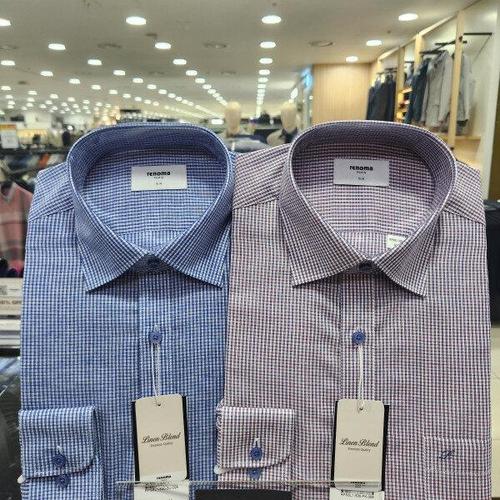 [레노마] 여름용 린넨혼방 스킵 일반핏긴팔 남자셔츠ROSSG1053블루