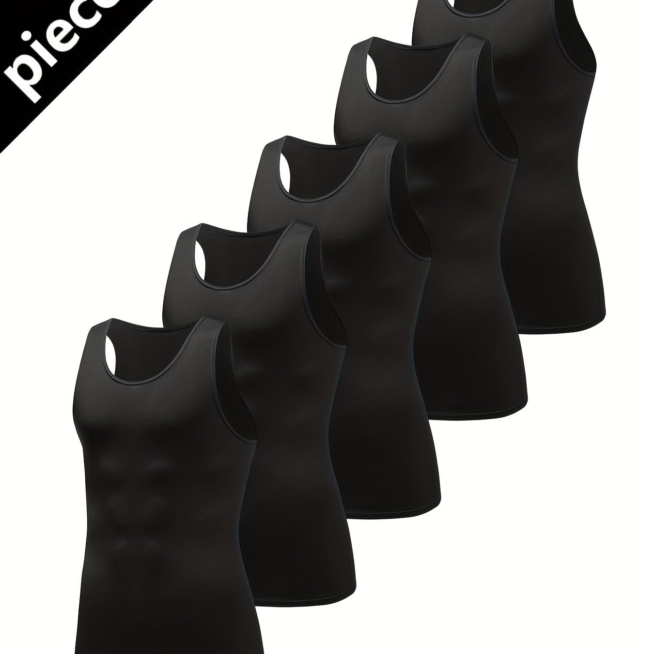 TEMU 남성용 퀵드라이 압축 트레이닝 조끼 5개 세트 - 통기성 민소매 피트니스 슈트, 스판덱스 혼방, 타이트핏 셔츠, 헬스장 및 야외 스포츠용 - 사계절 압축웨어