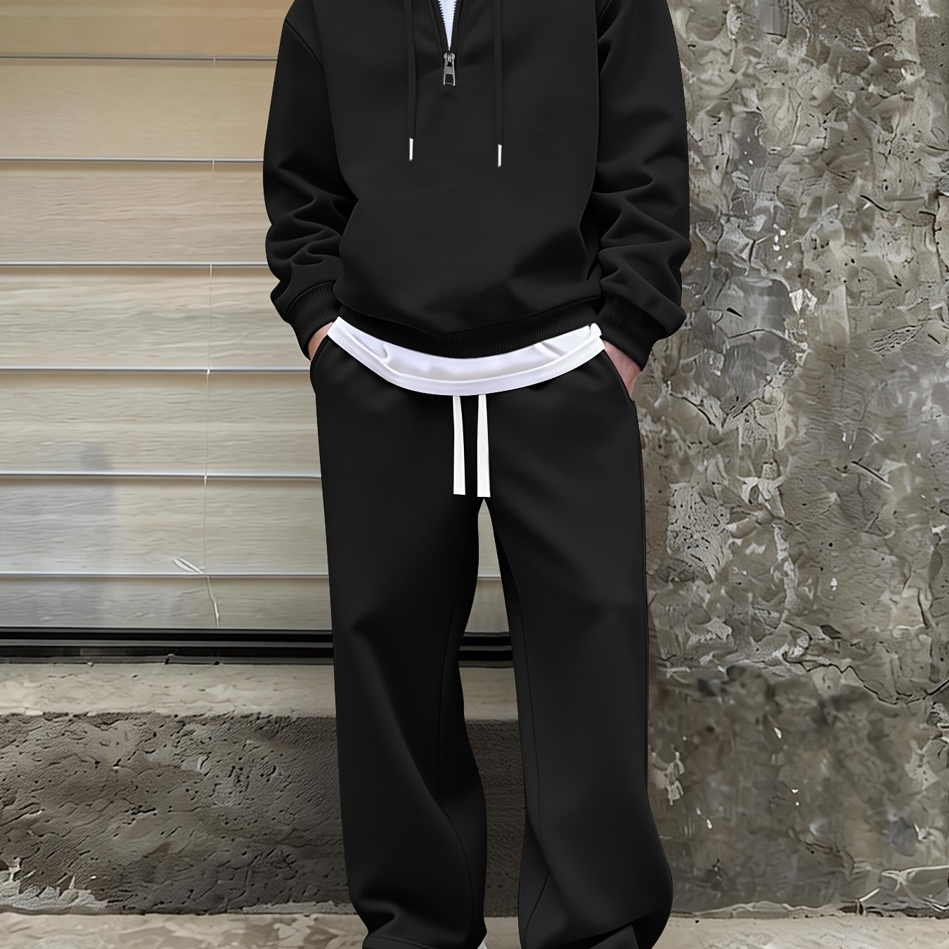 TEMU 스타 덴스 OBM 남성 캐주얼 후드 세트, 하프 지퍼, 겨울 아웃핏, 스타일리시 솔리드 컬러 레저 수트, 고품질 남성 트랙수트, 겨울 컬렉션, 패셔너블 남성 의류, 남자친구 선물