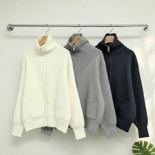 [다잇템]여자 폴리 집업 혼방 레이온 스웨터 가디건
