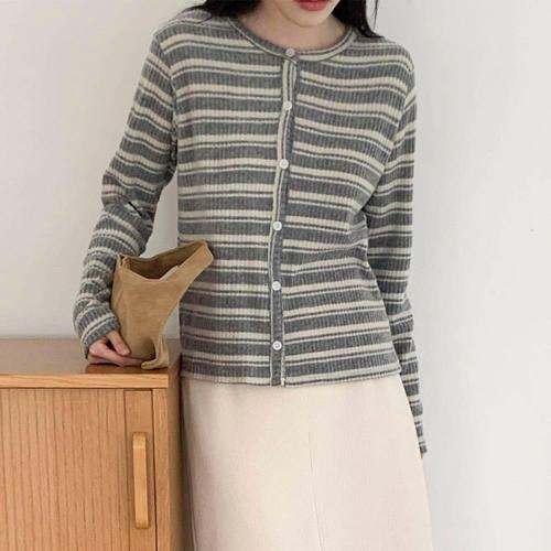 [다잇템]여자 스웨터 레이온 U넥 줄무늬 편한 가디건