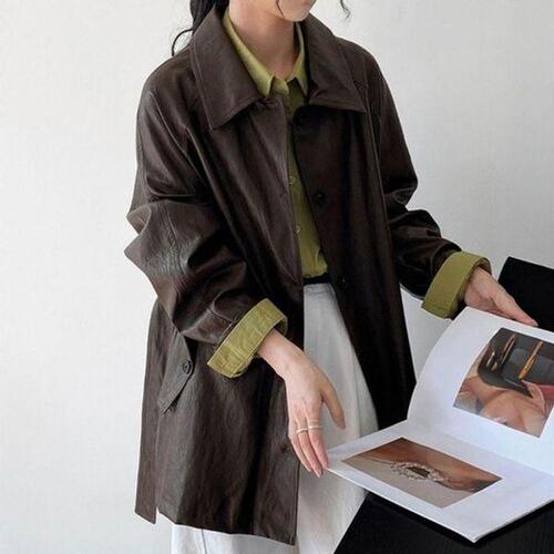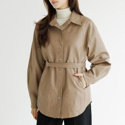 [다잇템]여자 카라넥 트임 레더 롱벨트 가을셔켓 자켓